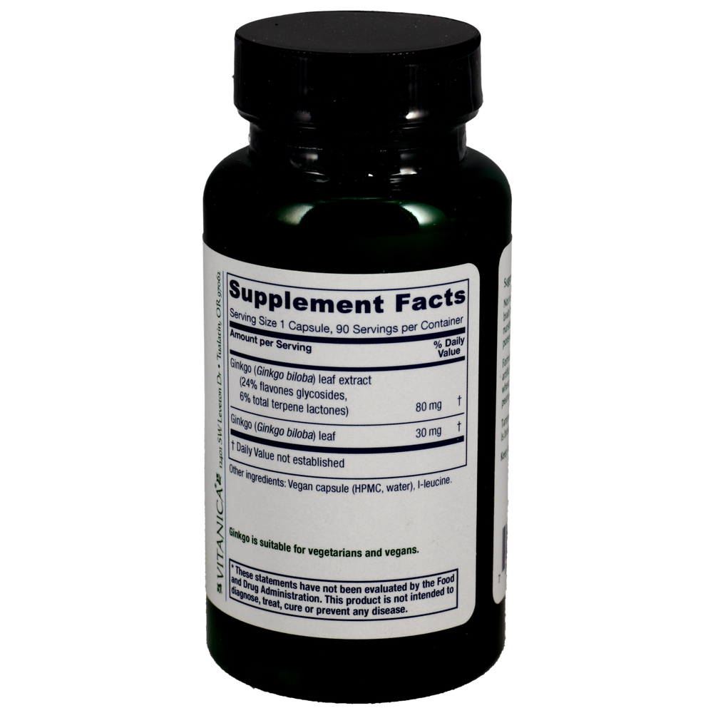 • The body of German research focuses on standardized extracts with 24% ginkgo flavone glycosides and 6% terpene lactones, and so each of Vitanica's capsules contain these precise compounds.