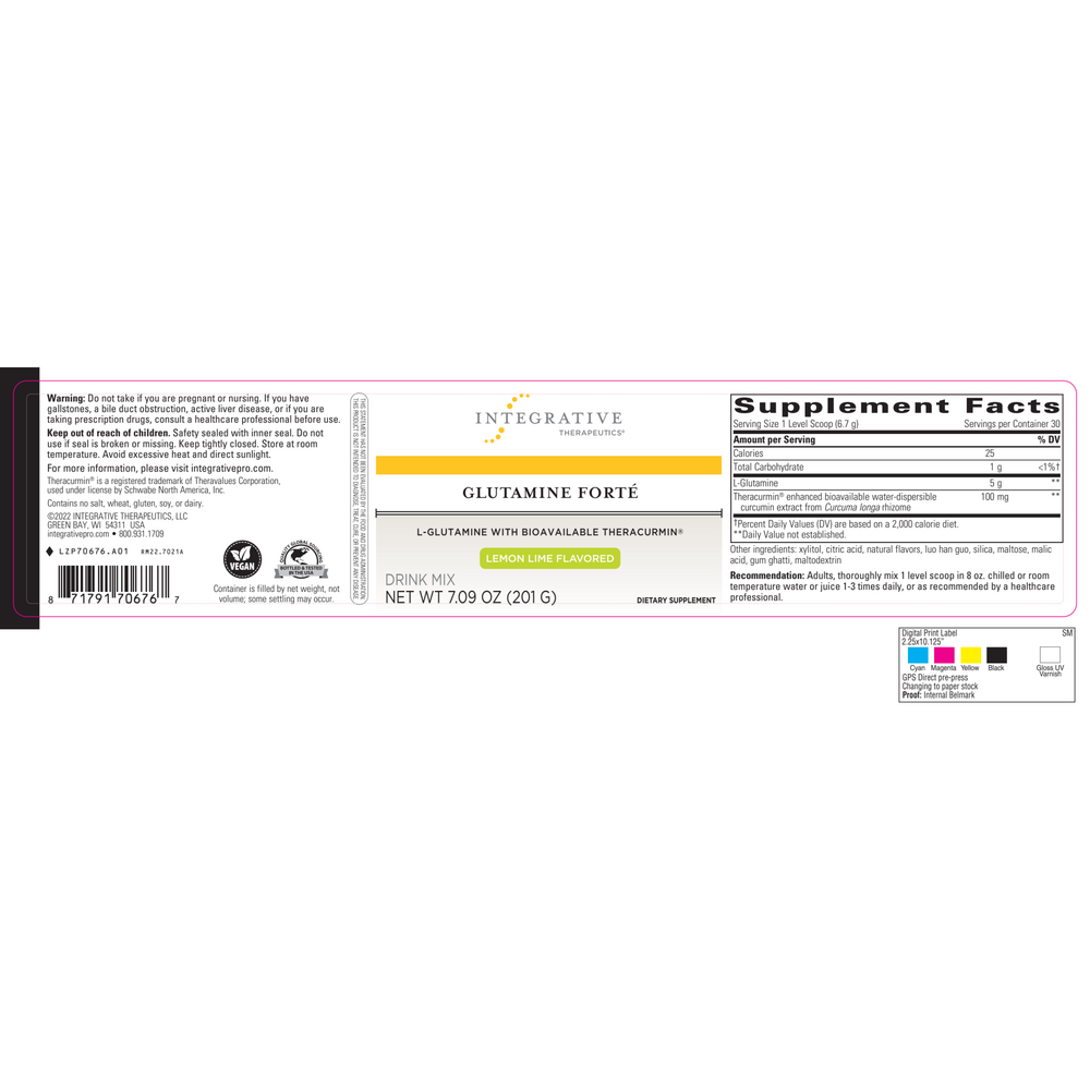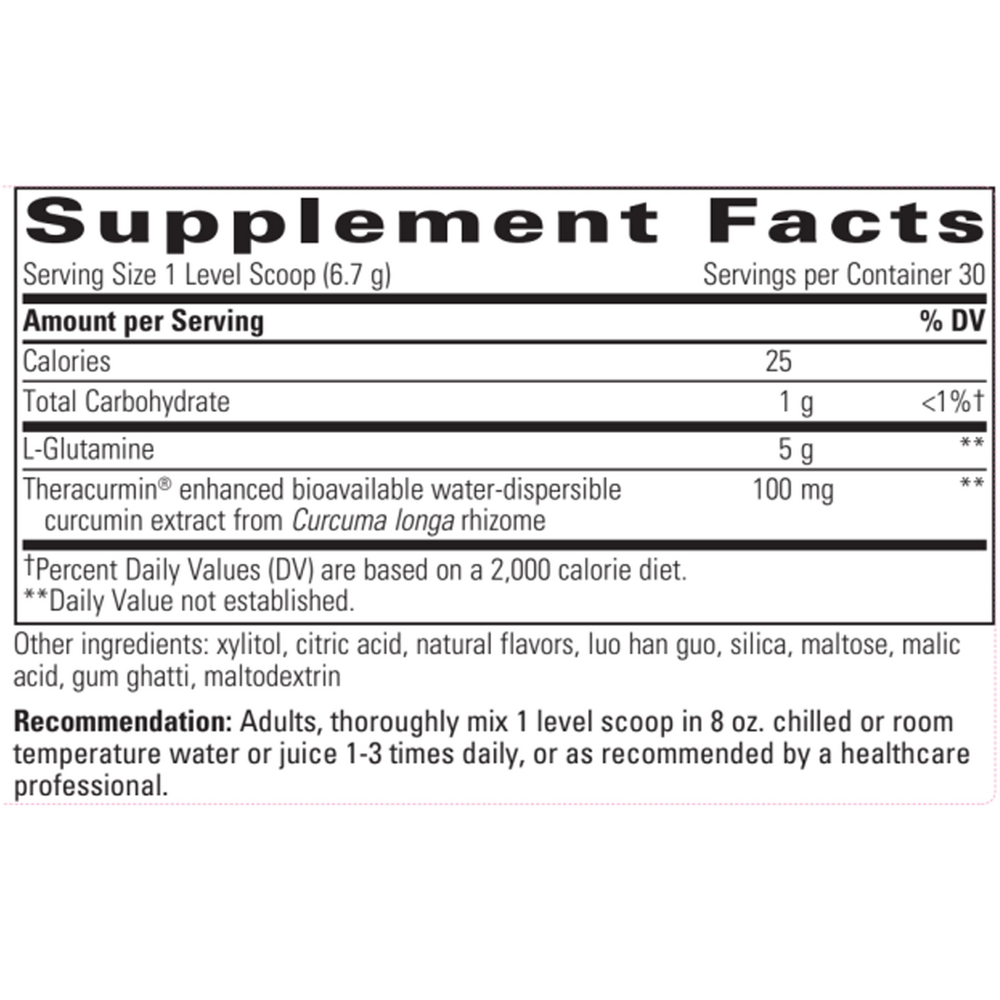 Glutamine Forté provides 5 grams of L-glutamine per serving with Theracurmin®, a novel water-dispersible form of turmeric with dramatically enhanced curcumin bioavailability.