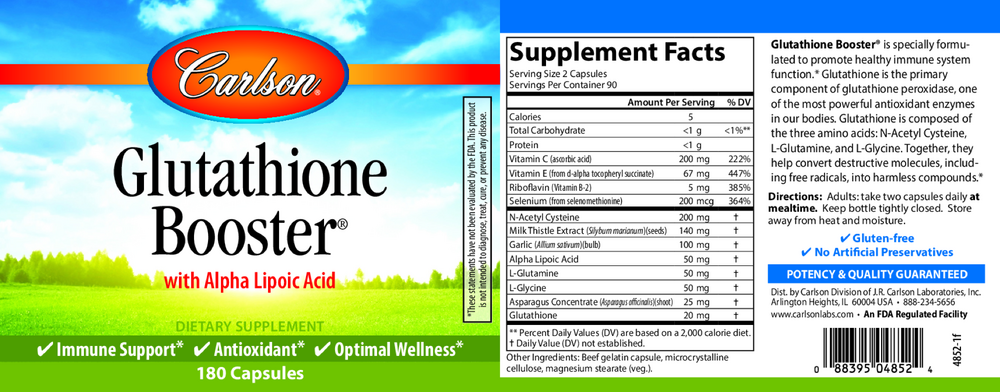Glutathione Booster® is designed to provide our body with the nutrients it needs to elevate or maintain healthy glutathione and glutathione peroxidase levels. Glutathione is the primary component of glutathione peroxidase, one of the most powerful antioxidant enzymes in our bodies. Glutathione is composed of the three amino acids: cysteine, glutamine, and glycine. Together, they help convert destructive molecules, including free radicals, into harmless compounds.*