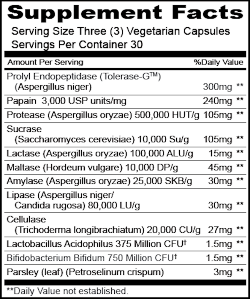 Gluten Resolveby Priority One® combines Tolerase®G a powerful new gluten targeted enzyme, with an array of beneficial plant enzymes to support those living a gluten free lifestyle.*