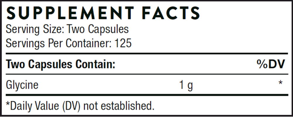 The amino acid glycine plays a key role in maintaining a healthy central nervous system (CNS).* It is considered one of the most important inhibitory neurotransmitters in the CNS, particularly in the brainstem and spinal cord.* Studies show glycine may help improve memory retrieval in individuals with sleep-depriving conditions such as jet lag and overwork.* Glycine also plays a key role in phase II liver detoxification by having a direct effect on toxin elimination or by increasing the level of glutathione.*