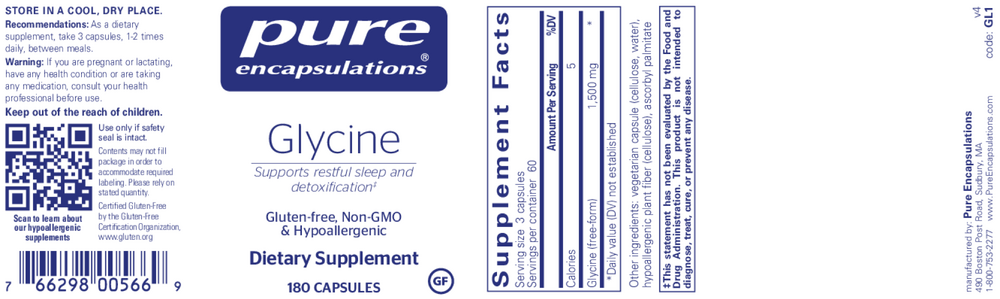 Glycine is the simplest amino acid; its side chain consists of just a single hydrogen atom. Supplementation with glycine has been shown to support healthy kidney and liver function as well as nervous system health. Animal studies and a small human study indicate that glycine has the potential to support memory and mental function. In another human trial, glycine, acting as an inhibitory amino acid, had neuroprotective effects. Animal studies suggest that glycine plays a protective role for the kidneys and liver particularly by supporting detoxification of certain chemicals.*