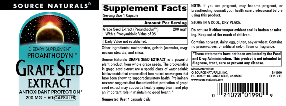 Source Naturals Grape Seed Extract is a powerful plant product from whole grape seeds. The procyanidins in grape seed extract are a special class of water-soluble bioflavonoids that are excellent free radical scavengers that have been shown to support circulatory health. Preliminary research suggests that the antioxidant protection of grape seed extract may support a healthy aging brain, and play an important role in maintaining good health.*