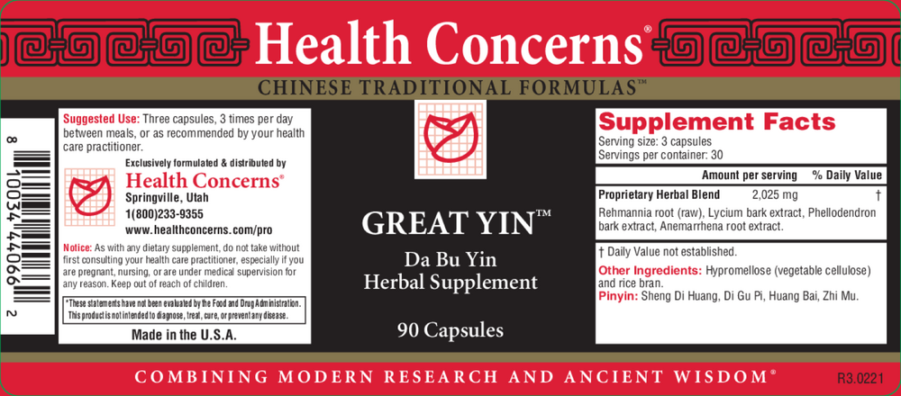 Great Yin is based on a traditional Chinese herbal formula that promotes the relief of menopausal symptoms.