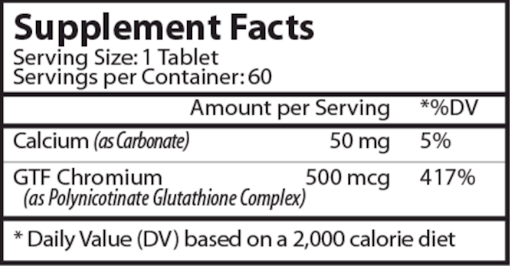 • A true GTF Chromium supplement, meaning that it is in a complex form of Chromium Polynicotinate and Glutathionate.