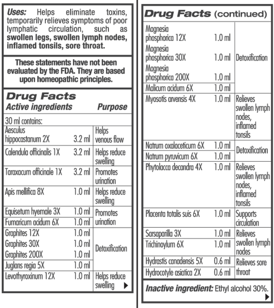 Helps eliminate toxins, temporarily relieves symptoms of poor lymphatic circulation, such as: swollen legs, swollen lymph nodes, inflamed tonsils, sore throat