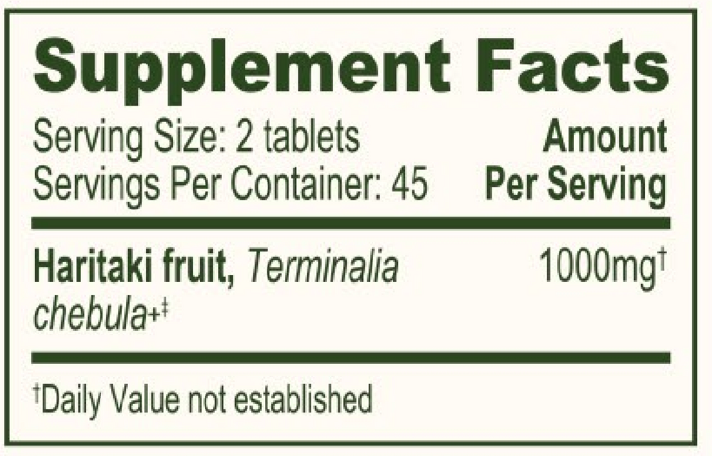 As one of the three ingredients in the Ayurvedic super formula Triphala, Haritaki is considered to be one of the best herbs for balancing vata dosha. Supporting the body's natural cleansing process, it gently removes accumulated natural toxins in the gastrointestinal tract.* As a rejuvenative, it strengthens and nourishes the tissues and supports the proper function of the colon, lungs, liver, and spleen* Haritaki is traditionally used to address all vata-related imbalances. It maintains regular elimination, helps promote healthy body mass, and supports comfortable and complete digestion.* Haritaki is highly revered in India, as it is believed to increase energy, intelligence, and awareness.* It is commonly taken for long periods of time—even years—and, as a customer favorite, it's a popular product in Banyan Botanicals Autoship subscription program. Haritaki is also available as a powder.*