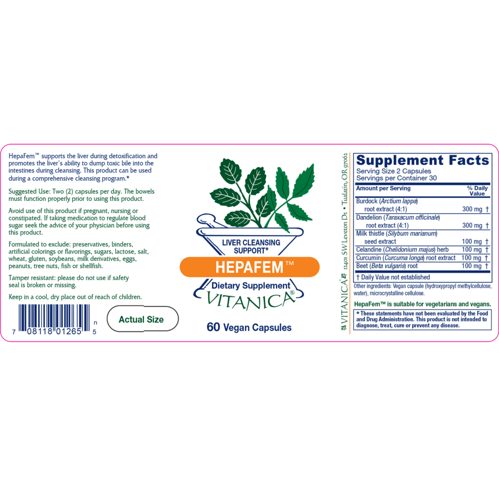 HepaFem is a combination of traditional western herbs supporting healthy liver detoxification.*