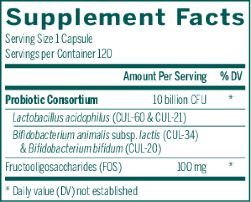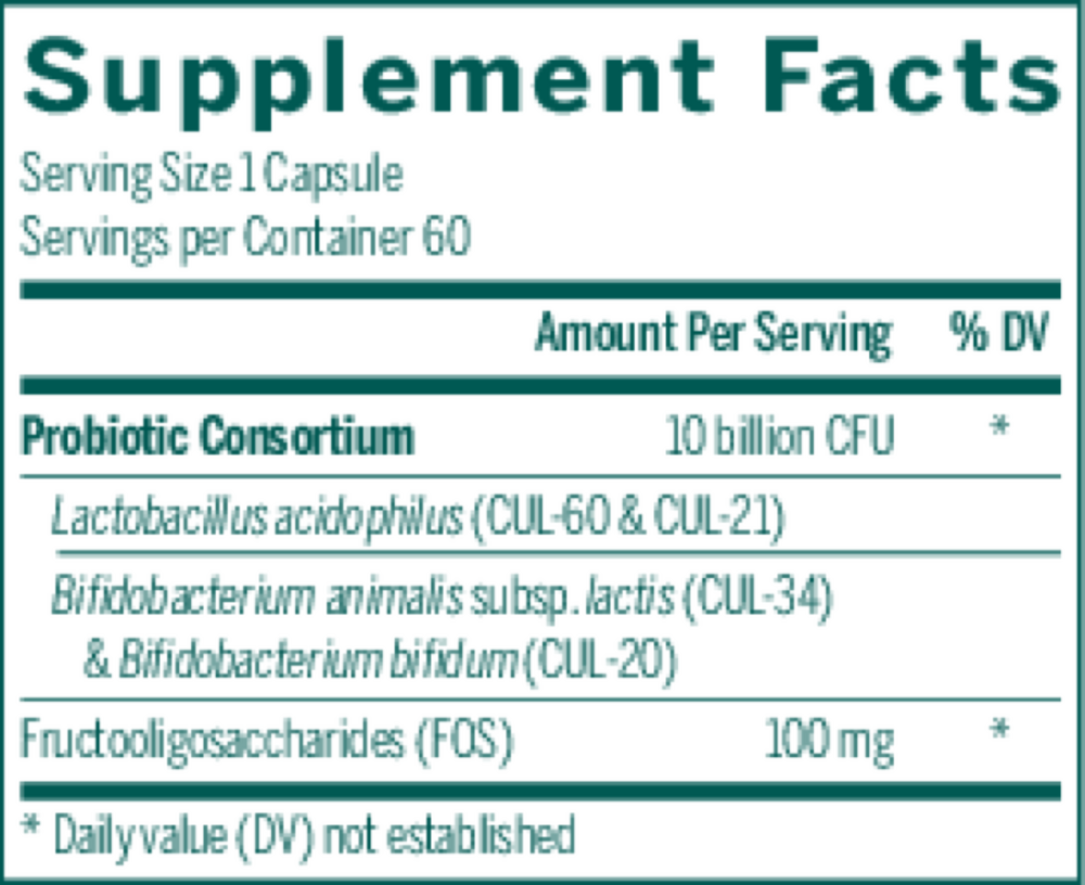 • Provides 20 billion CFU per day from two strains of Lactobacillus acidophilus, Bifidobacterium bifidum, and Bifidobacterium animalis subsp. lactis