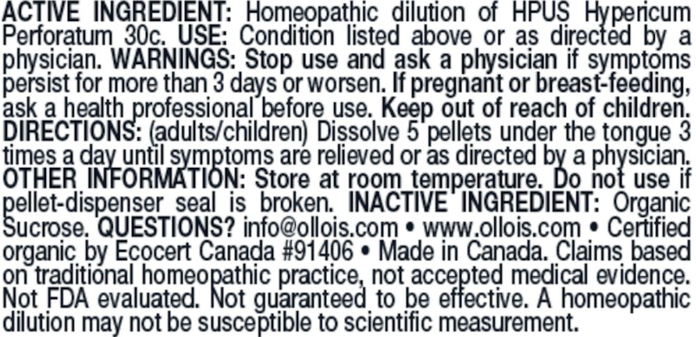 Homeopathic. Ollois organic certified and lactose free Hypericum Perforatum 30C is traditionally used for: nerve pain after surgery or injury.†