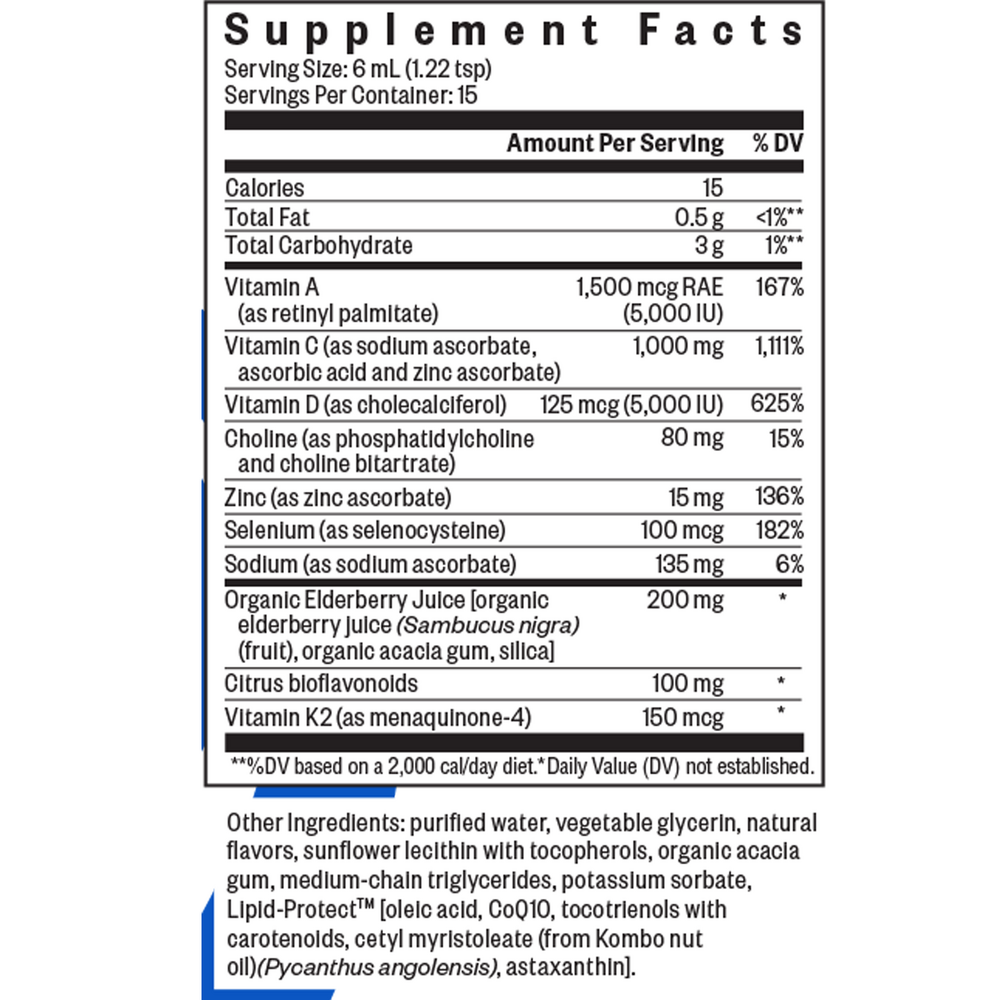 Other Ingredients: Purified water, vegetable glycerin, natural flavors, sunflower lecithin with tocopherols, organic acacia gum, medium-chain triglycerides, potassium sorbate, Lipid-Protect™, [oleic acid, CoQ10, tocotrienols with carotenoids, cetyl myristoleate (from Kombo nut oil) (Pycanthus angolensis), astaxanthin].