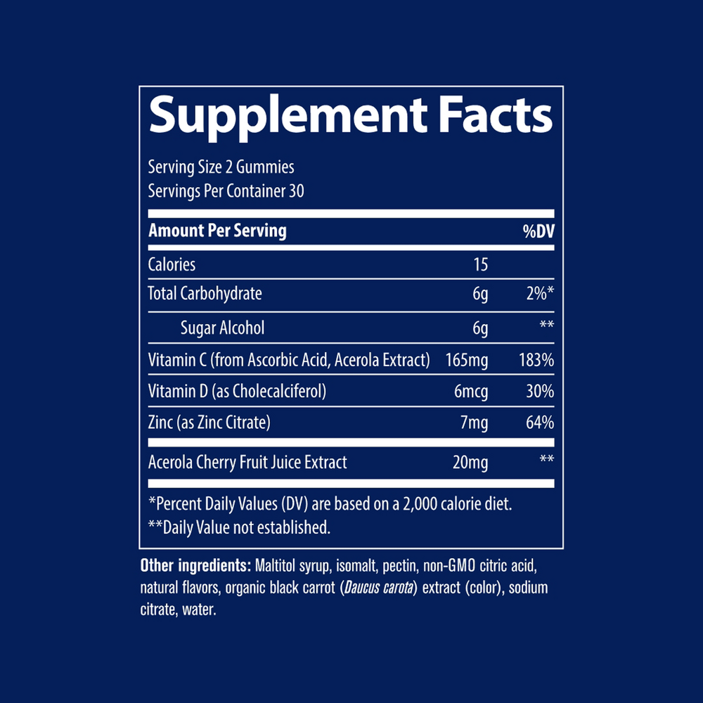 Keeping your immune system healthy is one of the most important aspects of wellbeing. Your body’s immune system is constantly protecting itself from foreign invaders that set out to wreak havoc on your health. Help support your immune system’s response to these invaders with Immunity Gummies.† They’re a delicious way to provide immune system-supporting zinc, vitamin C, vitamin D, and acerola cherry to your diet to help keep your immune system’s engine firing on all cylinders.†