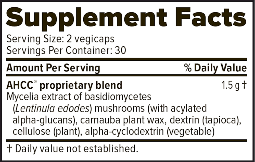A fermented extract of medicinal mushroom mycelis (roots), AHCC is one of the world's most researched specialty immune supplements, supported by over 20 human clinical studies. Studies on AHCC have been conducted at some of the finest research institutions worldwide, including highly regarded Ivy League universities.