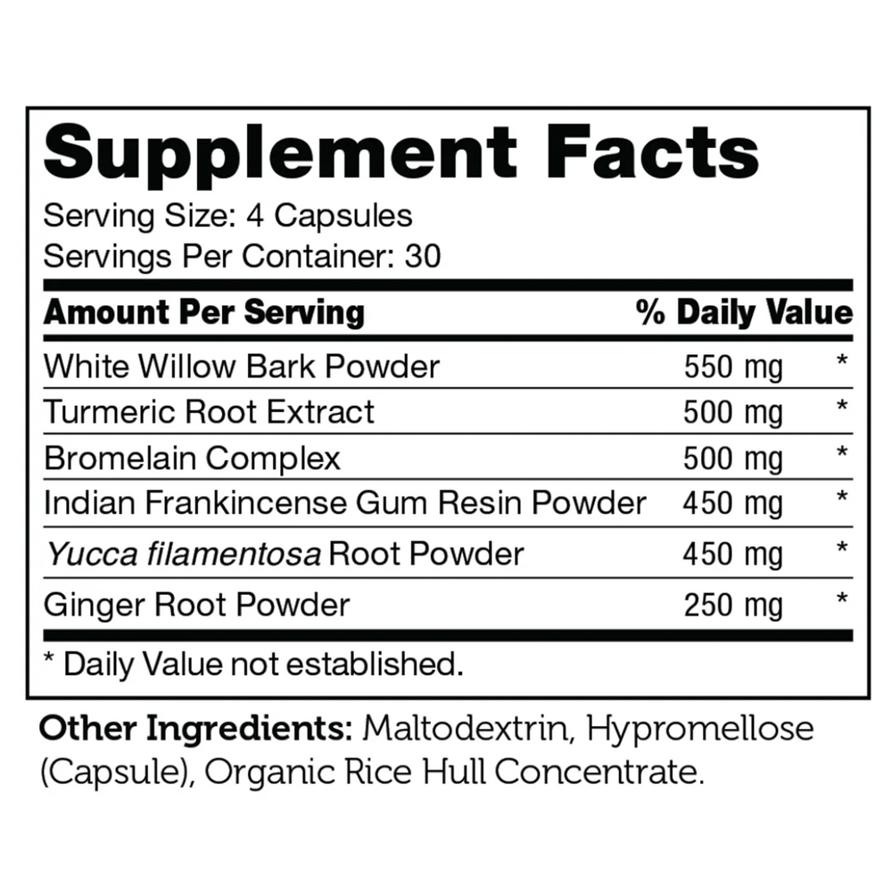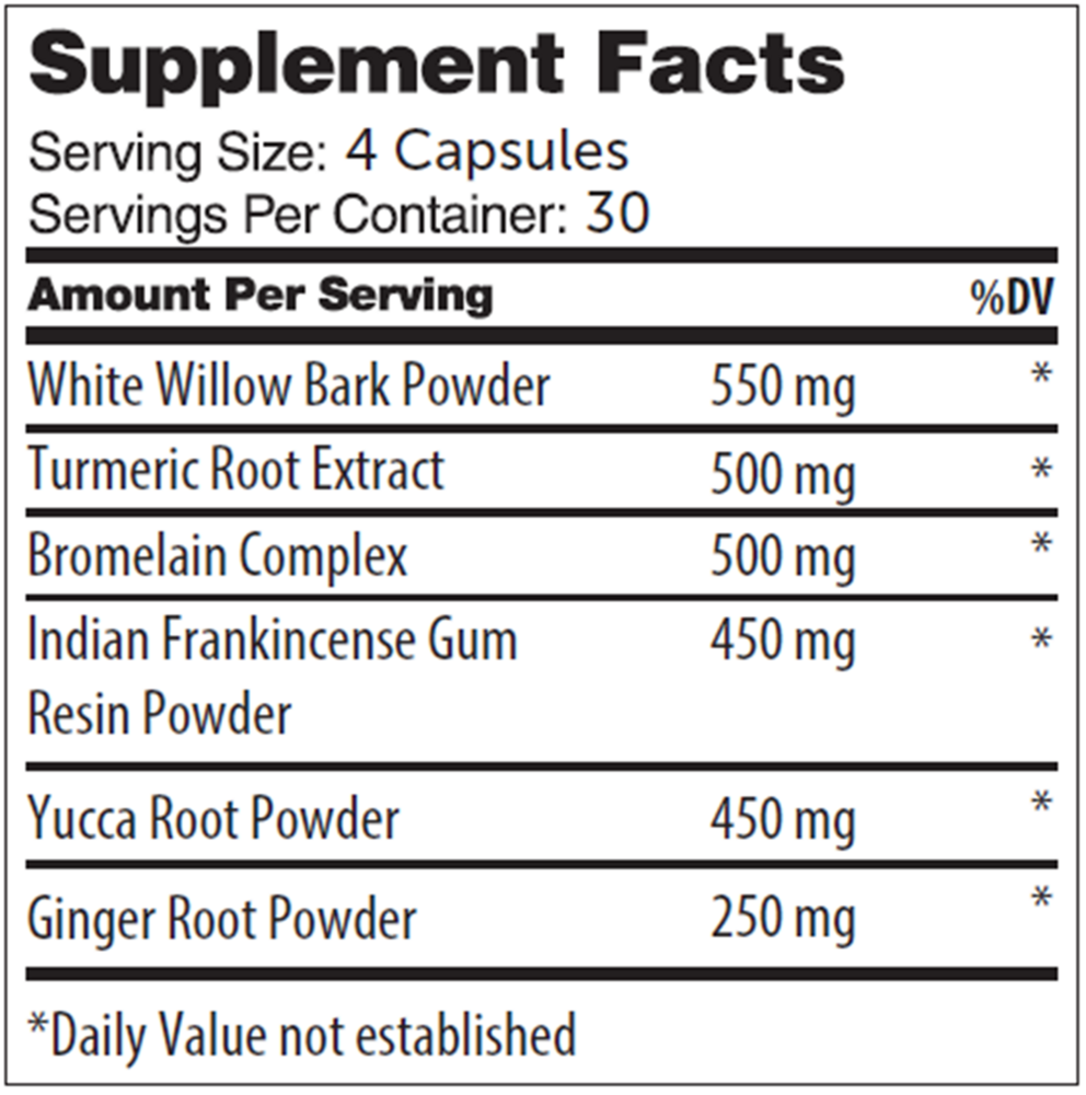 • Contains White Willow Bark, Turmeric Root and more