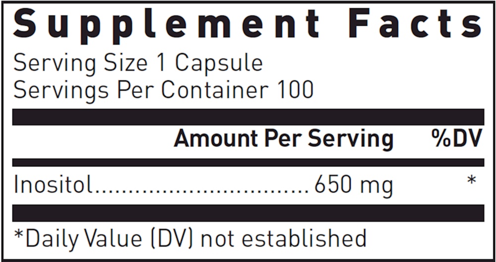 Inositol supplies 650 mg of inositol, also known as myo-inositol, for neurological health, behavior and mood support, and healthy ovarian function.*