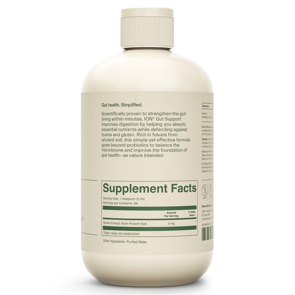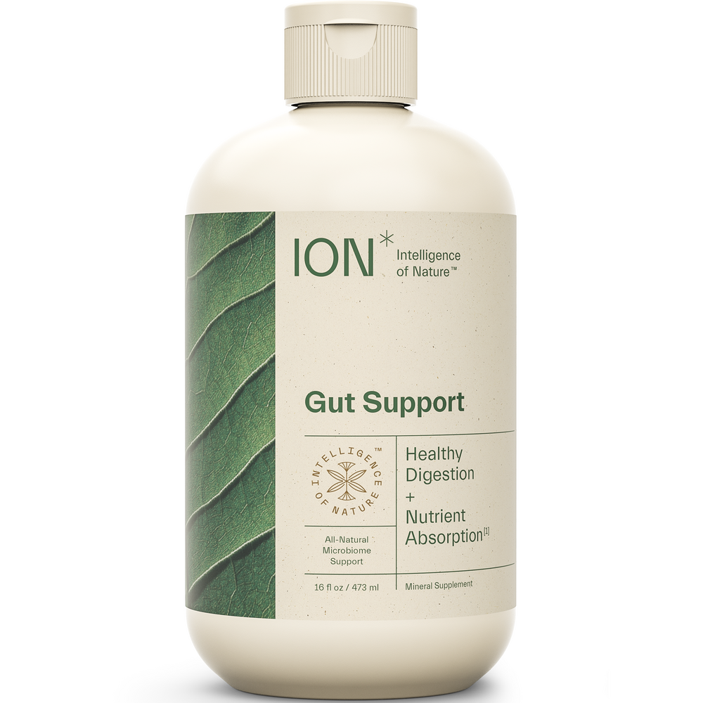 ION* Gut Support is a mineral supplement sourced from 60-million-year-old soil that provides foundational barrier support, naturally balancing the microbiome.*