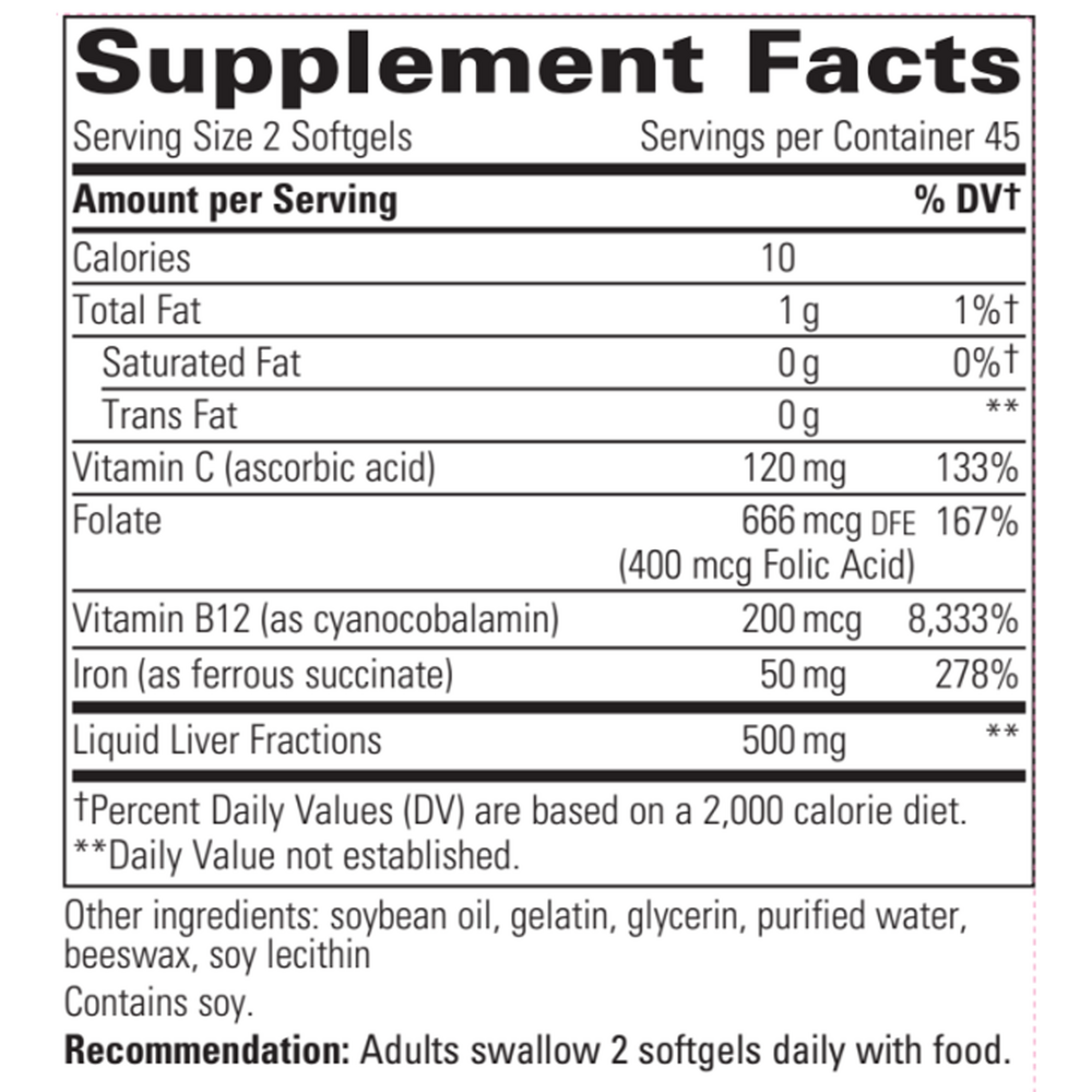 Supports energy and stamina.* Iron Complex features liquid liver fractions and vitamins C, folate, and B12.This product is not intended to diagnose, treat, cure, or prevent any disease.