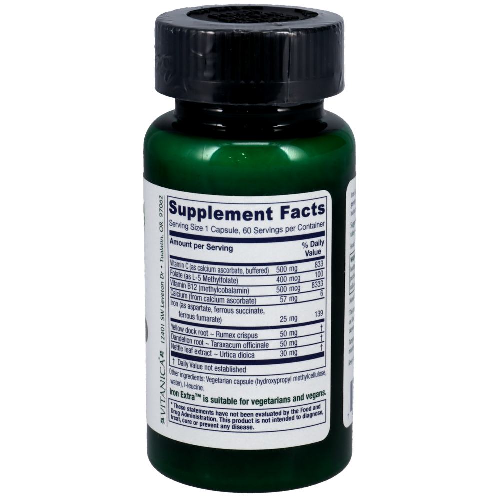 • Elemental Iron in each capsule is 25 mg from ferrous aspartate, ferrous succinate and ferrous fumarate – these gentler forms of iron are easier on the stomach and less constipating