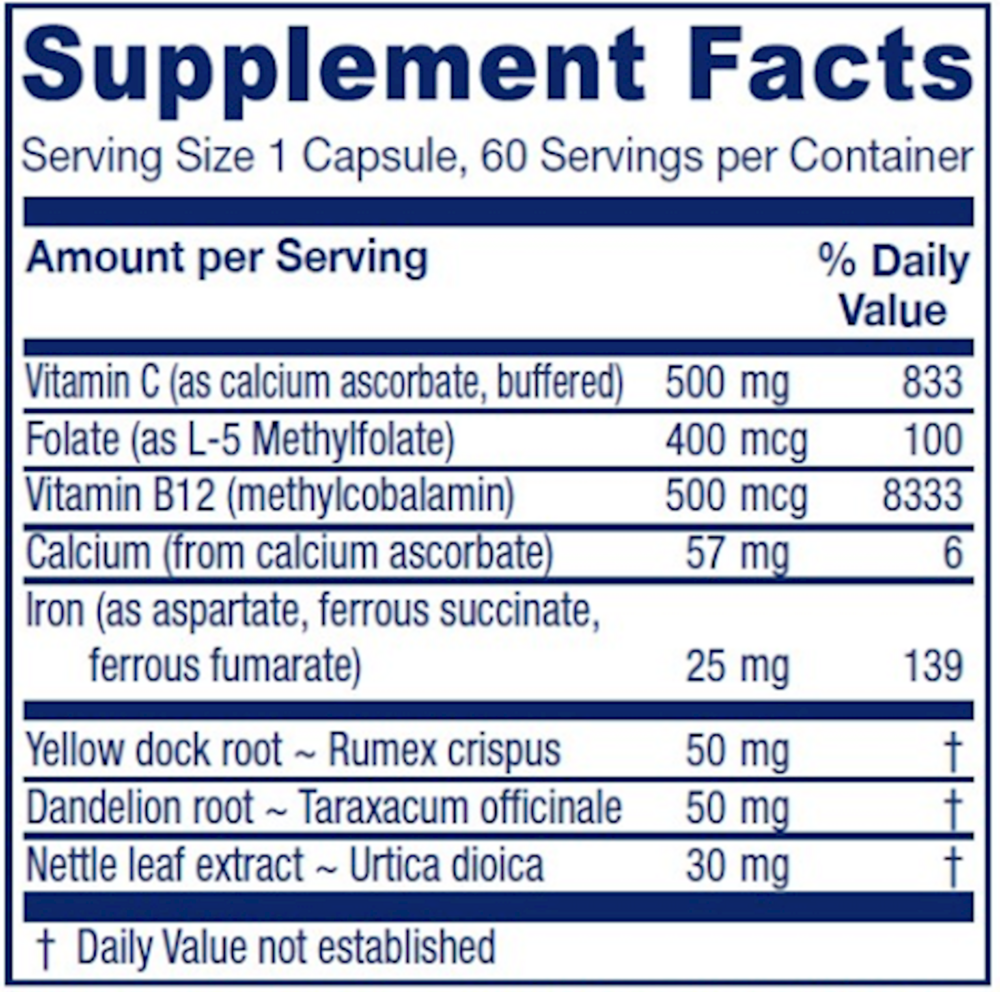 Holistic red blood cell support featuring more absorbable and gentler forms of iron as well as supportive herbs and vitamins.*