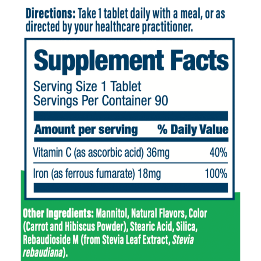 Iron Plus Vitamin C Quick Melt is a once-daily, great-tasting, bioavailable 18mg iron supplement (as ferrous fumarate) designed to dissolve quickly on the tongue, enabling easy swallowing to support iron levels and healthy red blood cells.*