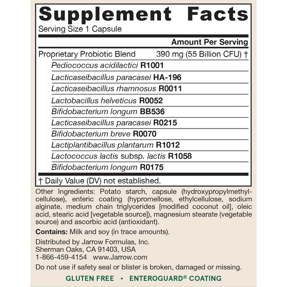 Our 10 strains of probiotic bacteria are delivered via proprietary enteric coated capsules (EnteroGuard®) that protect the probiotic bacteria from stomach acid and deliver the potency of friendly bacteria needed to support a healthy gut.* Jarro-Dophilus® EPS is blister-packed to protect the capsules from moisture and room temperature stable so it does not require refrigeration.