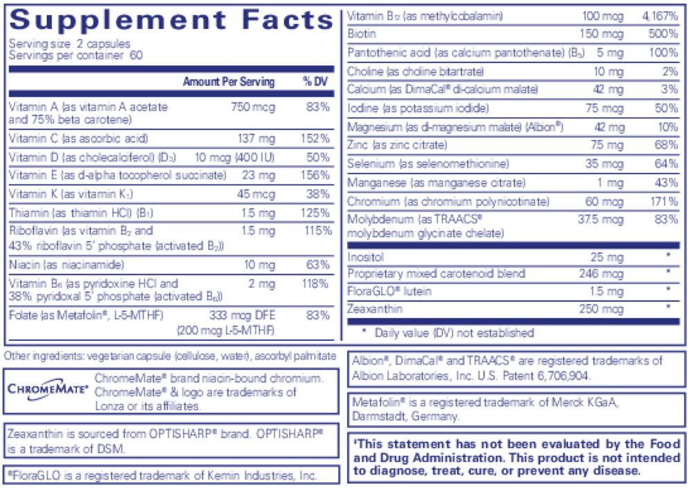 FloraGlo®lutein is a registered trademark of Kemin Industries, Inc. Zeaxanthin is sourced from OPTISHARP™ brand. OPTISHARP™ is a trademark of DSM Nutritional Products, Inc.