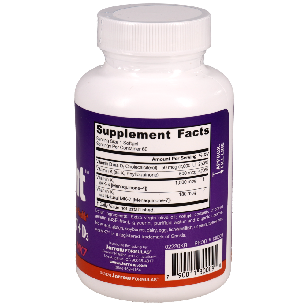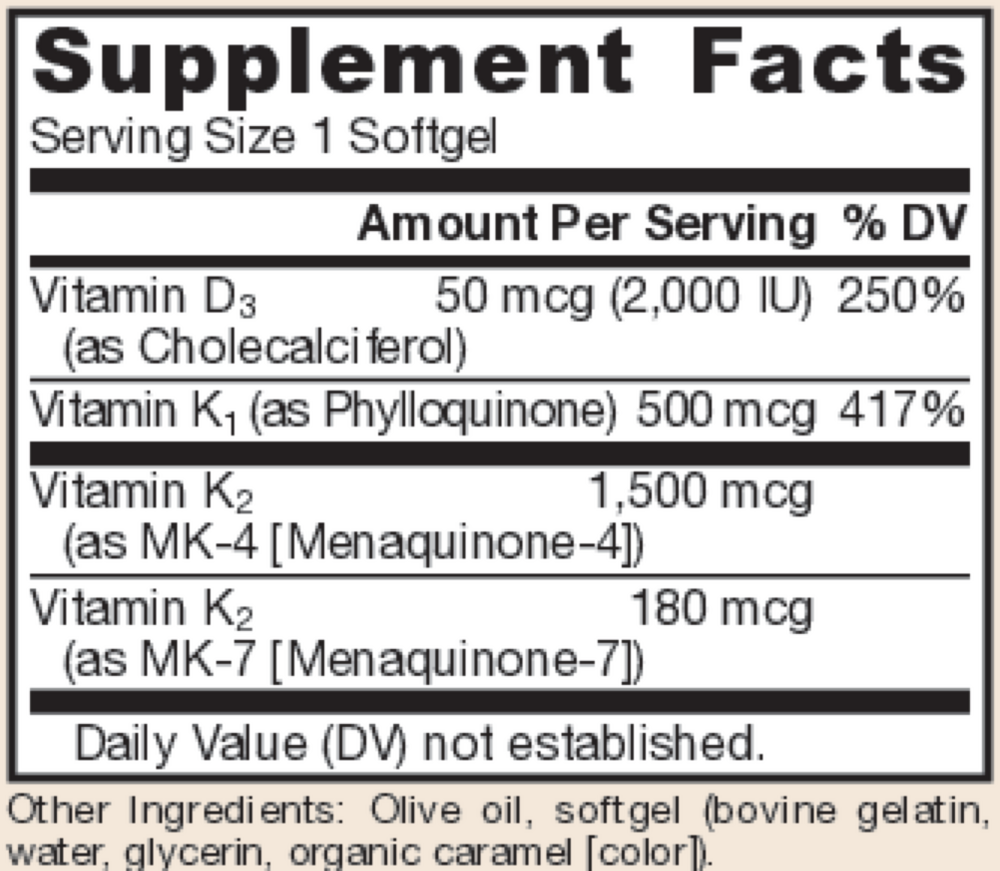 of Vitamin K: MK-7, MK-4 and K1, plus vitamin D3 to support