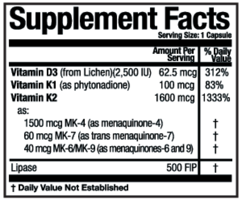 KD Ultra combines 2500 IUs of vegan vitamin D3 with a full-spectrum blend of the available Vitamin K2 chains (referred to as menaquinones) MK4, MK6, MK7 and MK 9 (MKs) as well as Vitamin K1 for the ultimate health benefits of each component.