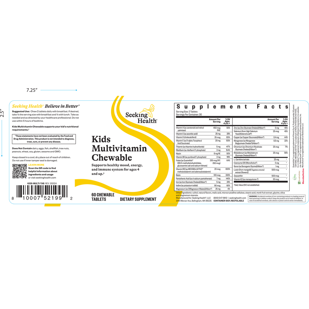 Vitamin A … 450 mcg RAE (as carotenoid and retinyl palmitate) Vitamin C (as ascorbic acid) … 25 mg Vitamin D (cholecalciferol) … 25 mcg Vitamin E (as D-alpha Tocopheryl Acid Succinate) … 20 mg Thiamin (as thiamine hydrochloride) … 5 mg Riboflavin (as riboflavin 5'-phosphate) … 2 mg Niacin … 8 mg NE Vitamin B6 (as pyridoxal 5'-phosphate) … 2 mg Folate [as Quatrefolic®(6S)-5-methyltetrahydrofolate, glucosamine salt and calcium folinate] … 255 mcg DFE Vitamin B12 (as MECOBALACTIVE® methylcobalamin and adenosylcobalamin) … 20 mcg Biotin … 100 mcg Pantothenic Acid (as d-calcium pantothenate) … 7 mg Iron (as Iron Glycinate Chelate)(Albion®) … 5 mg Iodine (as potassium iodide) … 90 mcg Magnesium (as Di-Magnesium Malate)(Albion®) … 25 mg Zinc (as Zinc Glycinate Chelate)(Albion®) … 5 mg Selenium (from High Selenium Yeast)(SelenoExcell®) … 25 mg Copper (as Copper Gluconate)(Albion®) … 0.4 mg Manganese (as Manganese Bisglycinate Chelate§)(Albion®) … 0.5 mg Chromium (as Chromium Nicotinate Glycinate Chelate)(Albion®) … 25 mcg Molybdenum (as Molybdenum Glycinate Chelate)(Albion®) … 25 mcg L-Carnitine tartrate … 25 mg Coenzyme Q10 (MicroActive®) … 5 mg Boron (as Bororganic Glycine)(Albion®) … 1 mg Lutein [from marigold(Tagetes erecta) extract (as flowers)] … 500 mcg Zeaxanthin … 500 mcg Vitamin K2 (as menaquinone-7) … 30 mcg