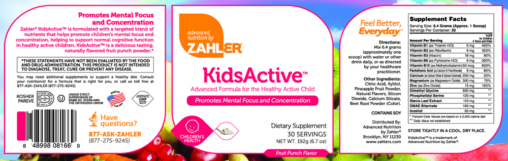 KidsActive is formulated with a targeted blend of nutrients, such as Dimethylglycine, Phospahtidylserine Complex, Inositol and more, all of which help promote children’s mental focus and concentration. It also helps support normal cognitive function in healthy, happy, naturally active children. KidsActive Powder is a delicious-tasting fruit punch flavored powder that can be mixed with any liquid.