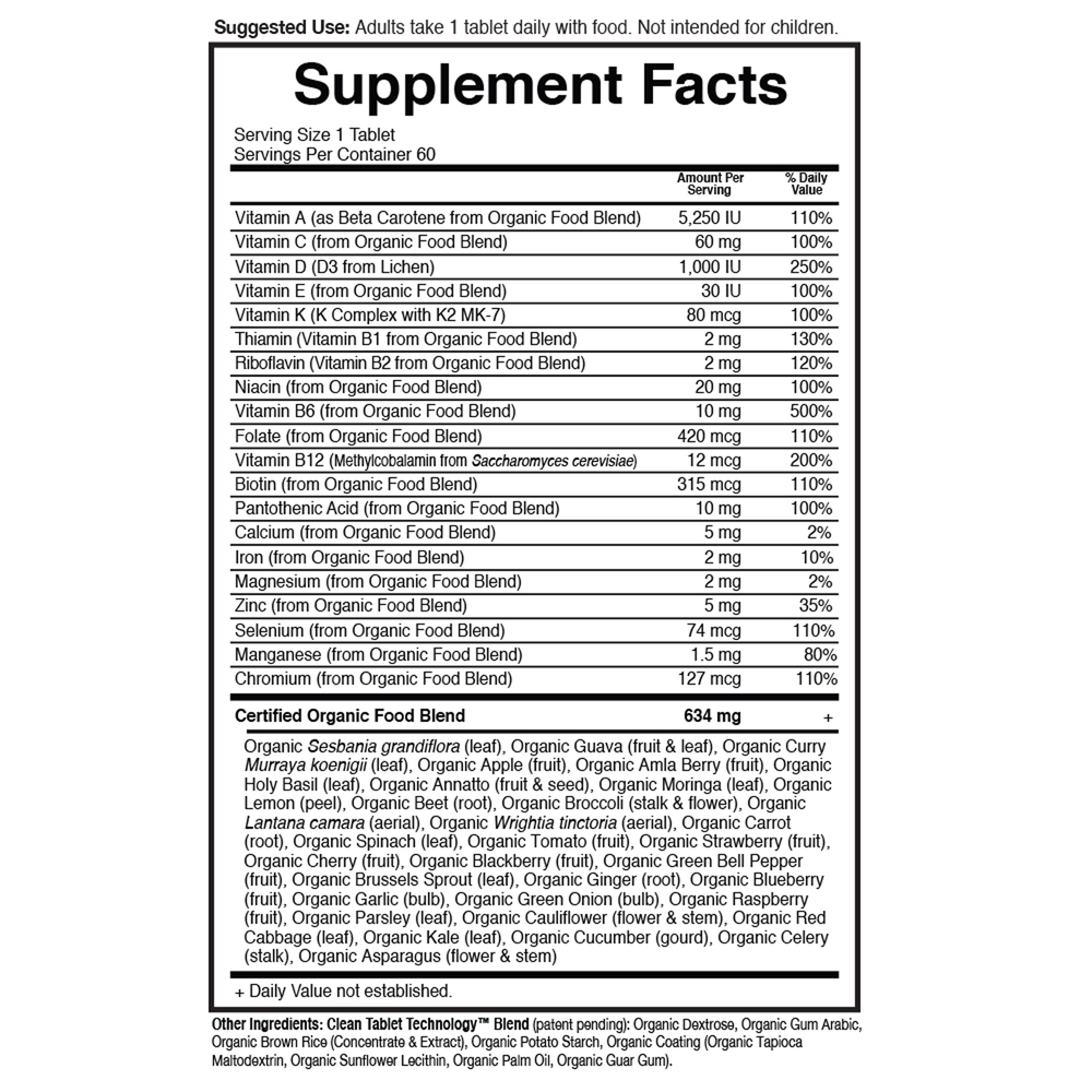 • 20 Vitamins and Minerals with 15 Greater than 100% Daily Value (DV)