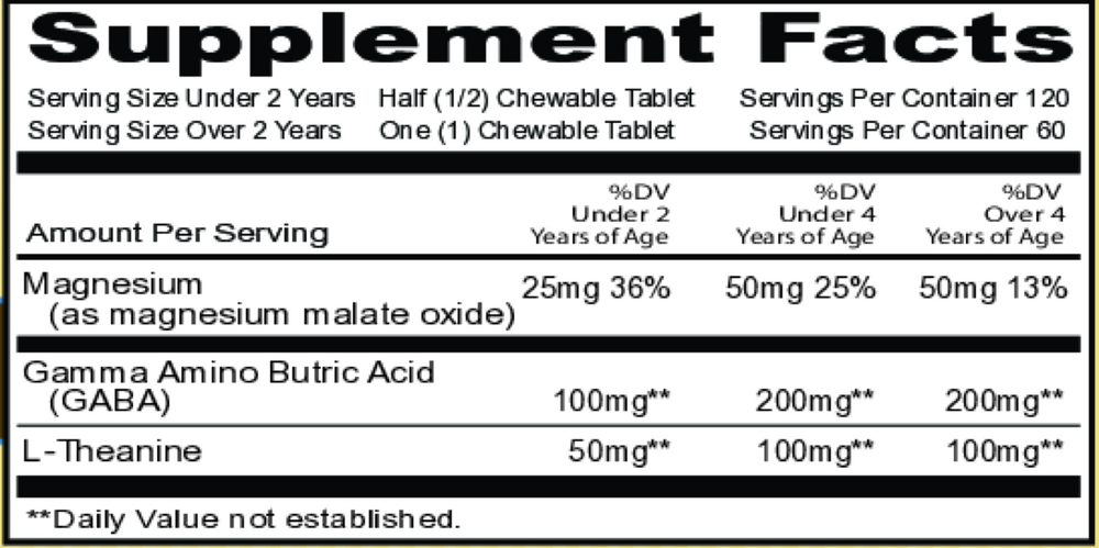 These calm kids' chewable tablets are designed to encourage normal sleep patterns, support the body's natural response to environmental stresses, and maintain a healthy balanced mood.*