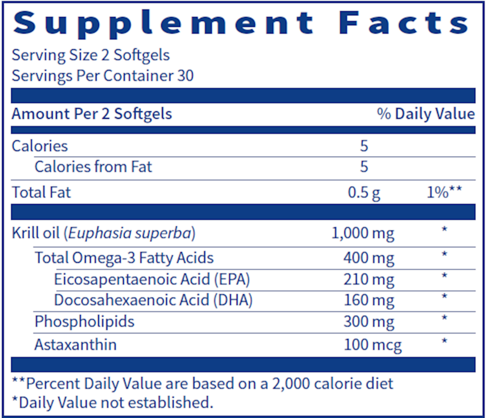 Krill Oil is produced through specialized technology, Multistage Oil extraction (MSO®). This technology assures high-quality oil with superior organoleptic properties compared to other commercially available products. Phospholipids in Krill Oil provide for superior absorption of EPA and DHA, so you get more benefits with smaller serving sizes. Phospholipids are part of the structural constituents of all cell membranes, supporting proper functionality and communication inside and between cells throughout the body.†