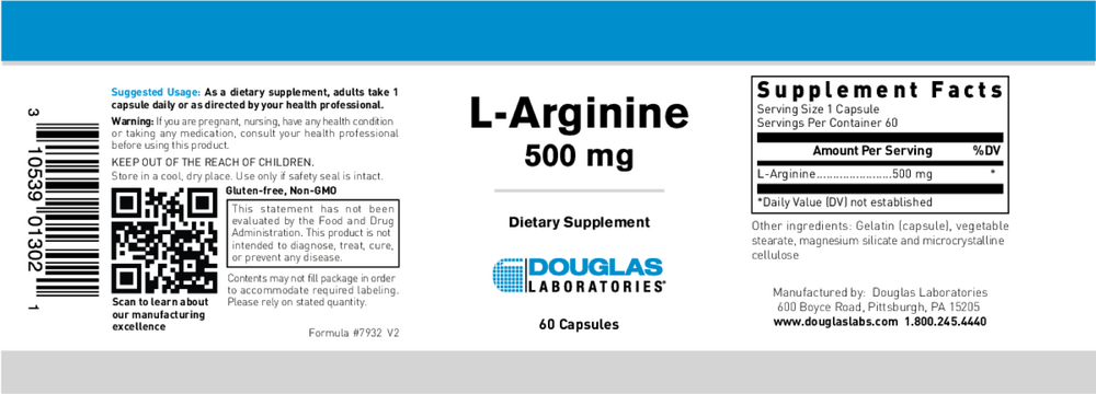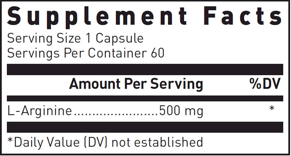 L-Arginine capsules contain 500 mg pure, crystalline L-arginine.