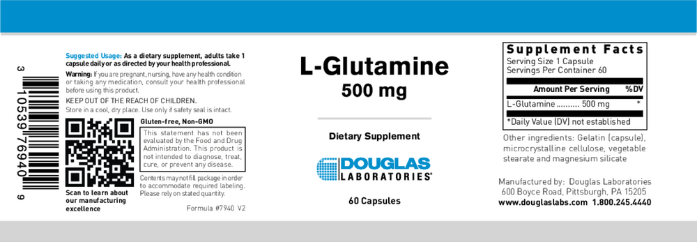 L-Glutamine 500 mg capsules contain 500 mg of pure crystalline L-glutamine.