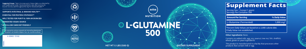 Glutamine is also known as a Nitrogen shuttle, a substance that picks up and drops off nitrogen around the body. Nitrogen is an essential component of DNA, the genetic material of life and muscle building. Glutamine is a prominent contributor to the functional integrity of the intestines and serves as an energy source for these high activity cells.* In the cells of the immune system, glutamine is pivotal in their response to “foreign” challenges by serving both as metabolic fuel and as a precursor to RNA and DNA.* Glutamine is the dominant amino acid in cerebrospinal fluid and readily enters the brain where it can serve as a precursor to neurotransmitters. Glutamine is readily absorbed from the intestinal tract and has a mild sweet taste. MRM’s L-Glutamine is produced through fermentation by Japan’s leading pharmaceutical production facility. It is not synthetically produced.