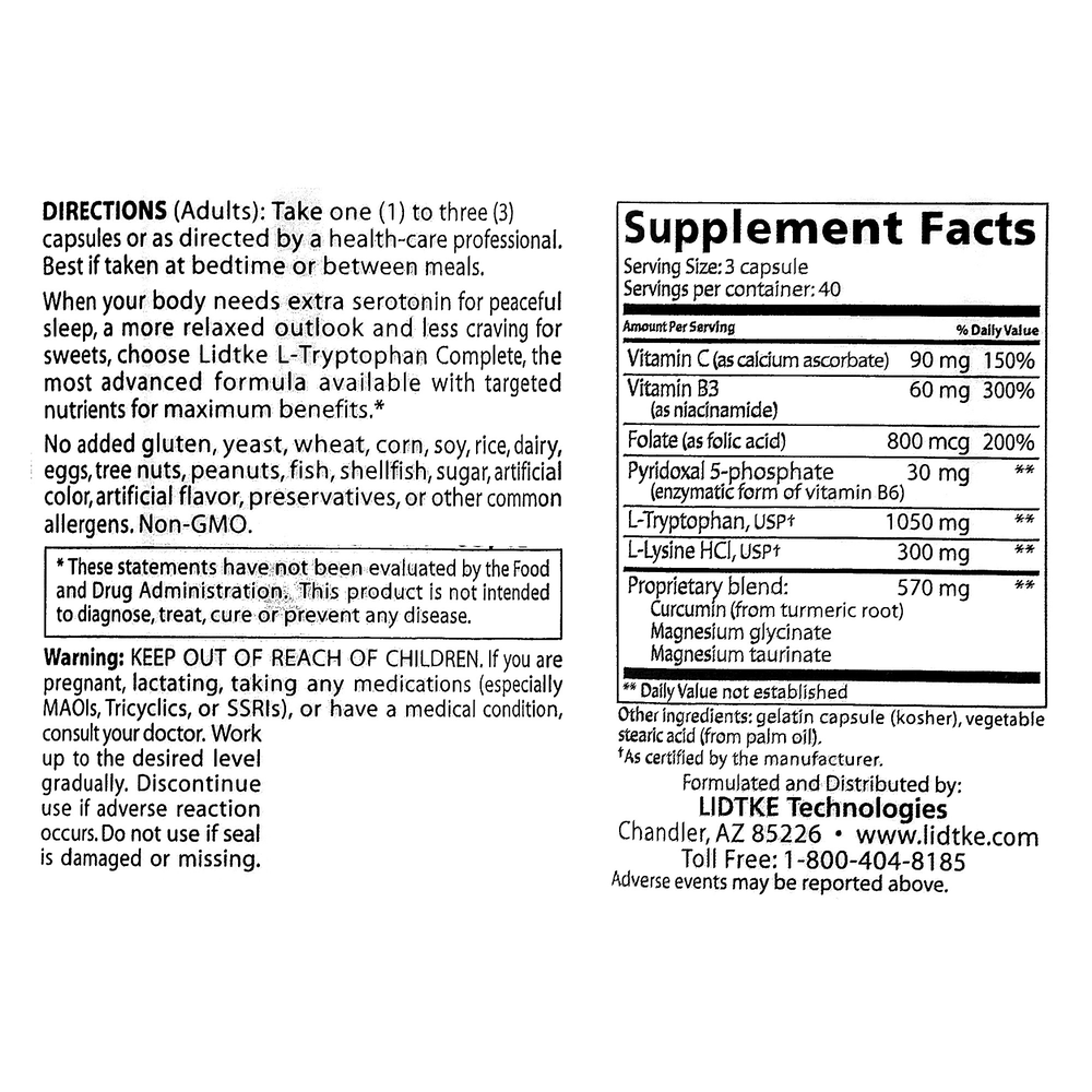 L-Tryptophan Complete is a unique formulation designed to maximize and maintain healthy levels of serotonin in the brain.* In conversations, health professionals occasionally report that poorly nourished individuals or individuals in poor health not respond fully to plain L-Tryptophan, even when L-Tryptophan is clearly indicated by tests and symptoms. It is for these individuals, and for individuals in third world and developing nations, that L-Tryptophan Complete was developed.