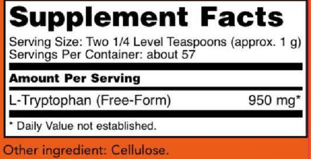 L-Tryptophan is an essential amino acid; therefore, it is not synthesized by the body and must be obtained from the diet. L-Tryptophan is critical for the production of serotonin and melatonin, which help to support a positive mood, healthy sleep patterns, and proper immune system function.* Every lot of NOW® L-Tryptophan is tested to be free of Peak E and microbial contamination.