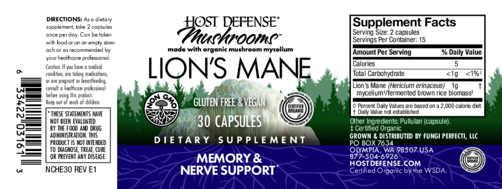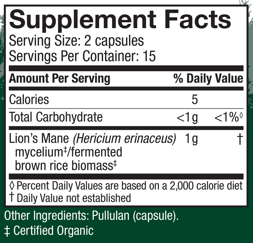 Host Defense® Lion’s Mane Capsules use activated, freeze-dried, Certified Organic mycelium, with a full spectrum of constituents: polysaccharides (beta glucans, arabinoxylane, glucose, xylose, galactose and mannose), glycoproteins, ergosterols, triterpenoids and other myco-nutrients, which are essential for Supporting Natural Immunity.*