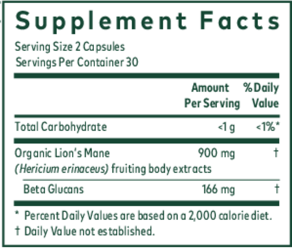 Each two capsules = 5,000 mg dried Lion's Mane mushroom