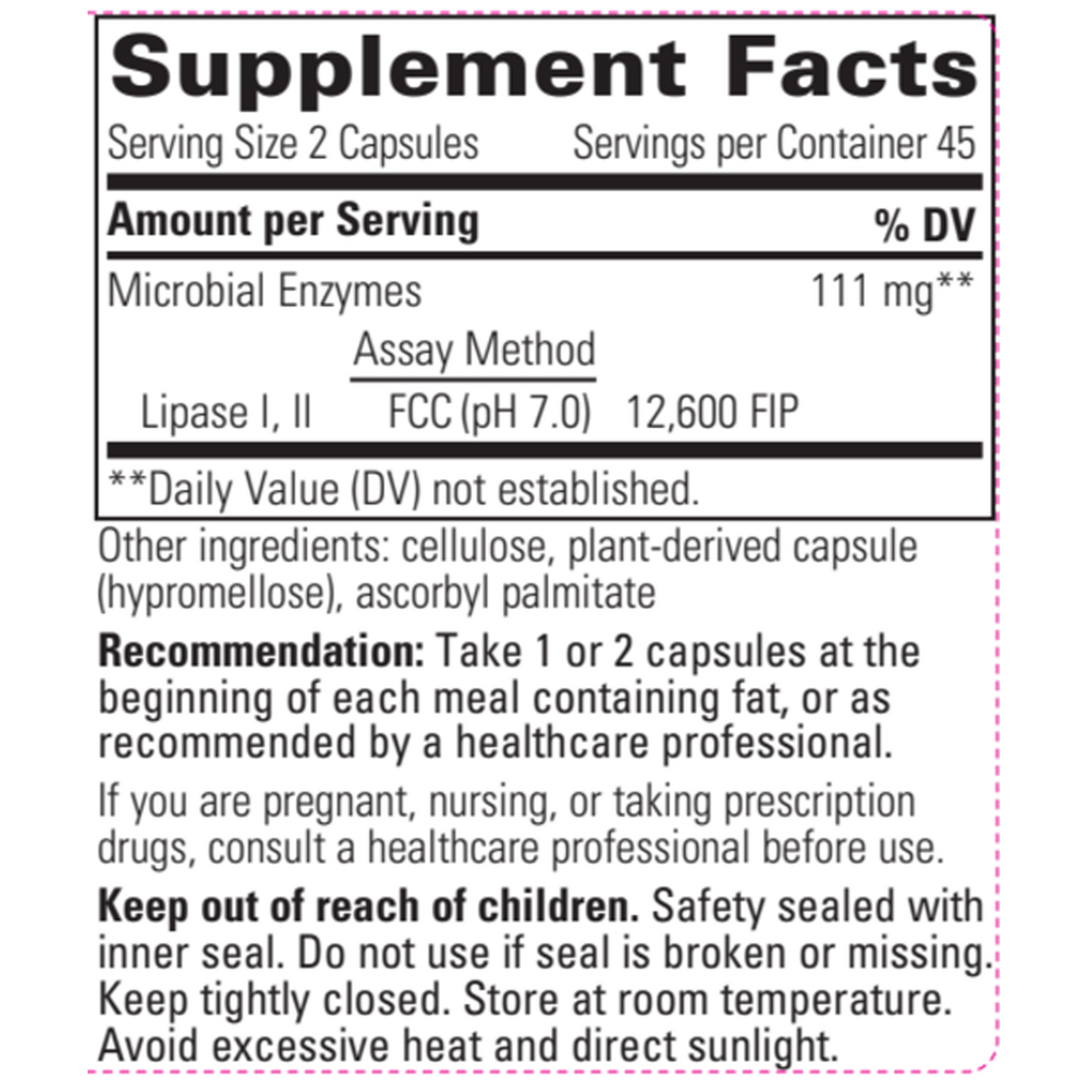 Lipase is a microbial enzyme that aids in the digestion of fats.* Lipase Concentrate-HP is pH-stable and active in both acid and alkaline conditions. As a result, this formula supports the digestion of fats in gastrointestinal pH conditions.*