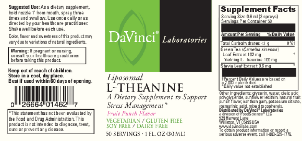 Liposomal L-Theanine is recommended for promoting calm and relaxation, supporting mental focus and alertness,balancing neurotransmitters involved in relaxed behavior and reducing irritability*