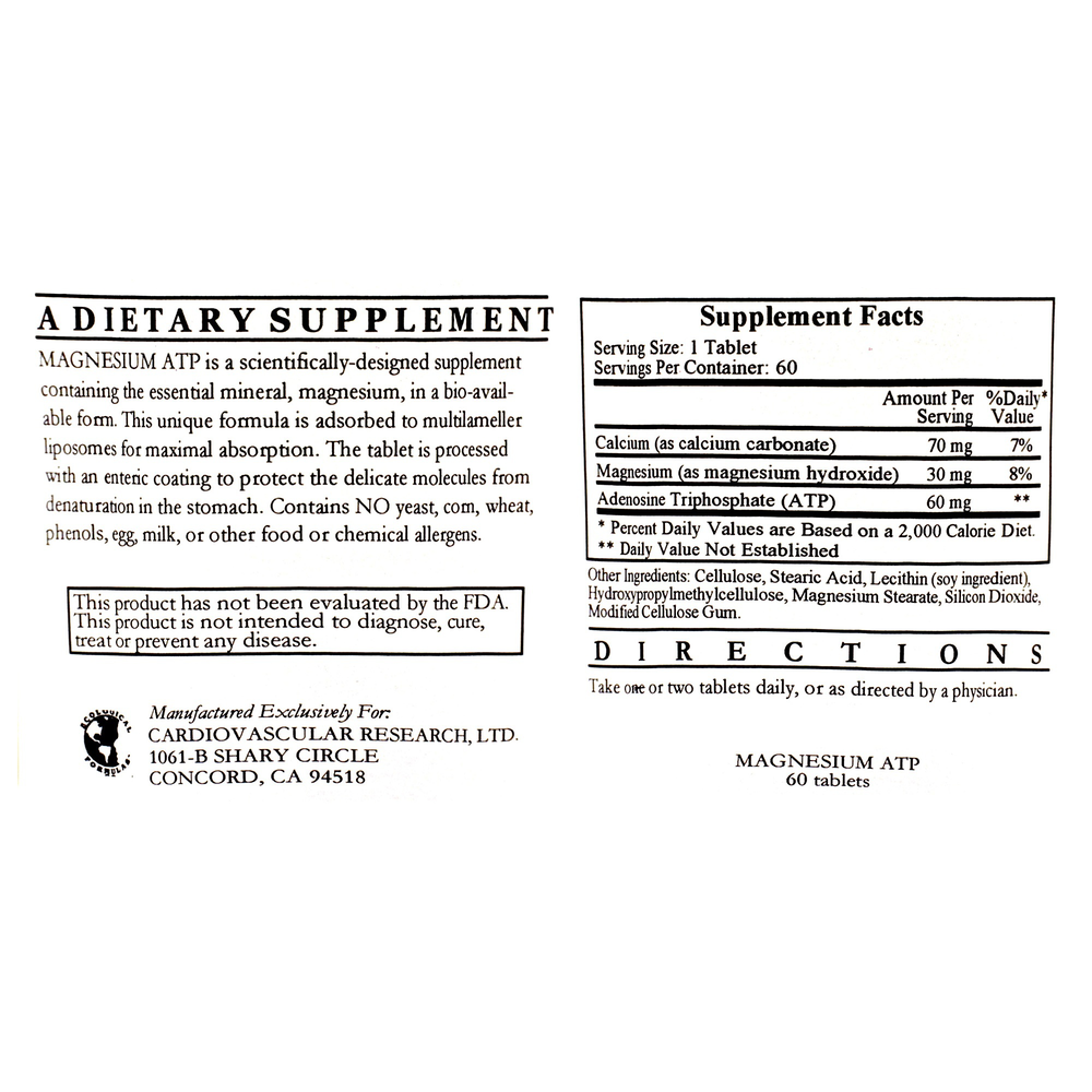 Liposomal Magnesium ATP 30 mg by Ecological Formulas is a dietary supplement designed to promote healthy bones and proper muscle function.* The key ingredients used to create Liposomal Magnesium ATP 30 mg by Ecological Formulas are calcium and magnesium, both vital minerals for supporting a healthy skeletal system comprised of strong and dense bone tissue and muscles that are easily able to relax and contract.* Adenosine Triphosphate, or ATP, is the third potent ingredient featured in this supplement that is a necessary element for proper muscle function.*
