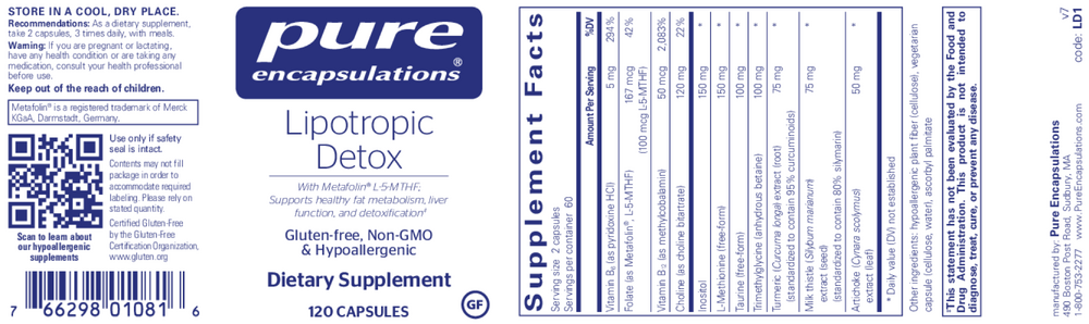 The lipotropic agent's choline, betaine, methionine, vitamin B6, vitamin B12, and folate (L-5-MTHF) support healthy hepatic fat metabolism and bile flow. Efficient processing and breakdown of fats in the liver maintain healthy overall liver function and detoxification. As methyl donors, these same nutrients are also critical for methylation, a widespread biochemical process in the body that involves transferring a methyl group to another compound. Methylation of DNA supports healthy DNA integrity and stability, important for liver, colon and overall cell health. Taurine, curcumin, silymarin, and artichoke have been added for their abilities to support healthy bile flow, gene expression, and the body’s normal toxin metabolism.*