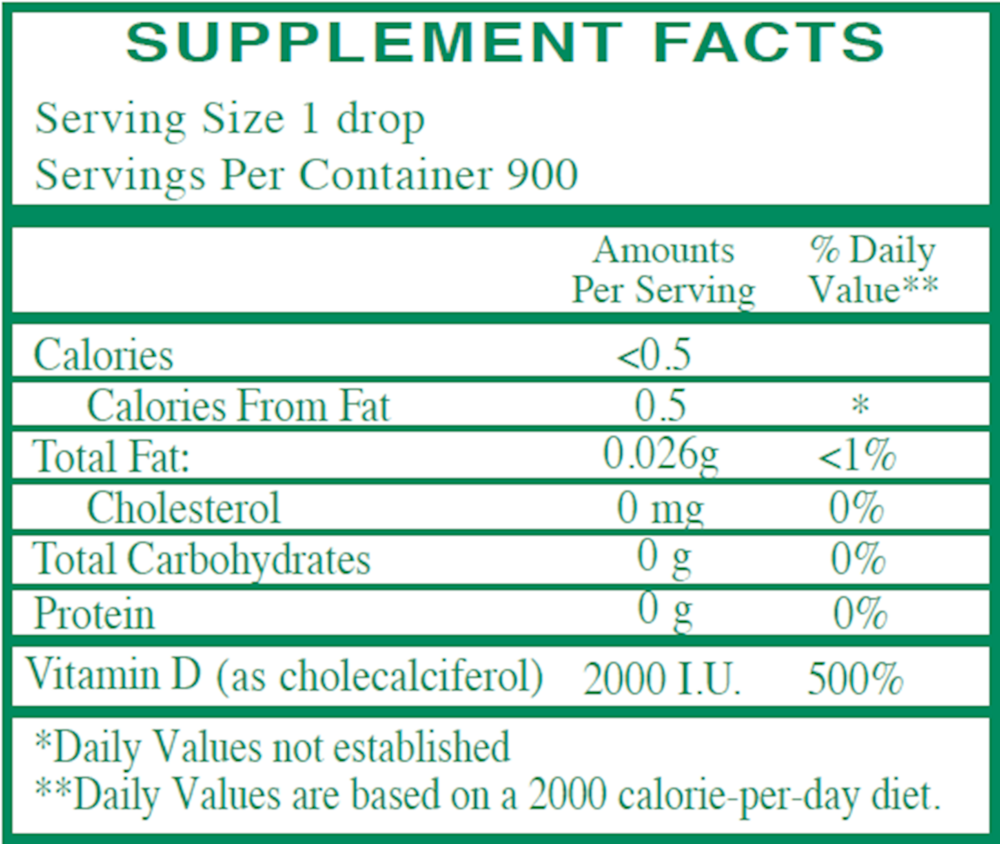 A dietary supplement providing 2000 IU of cholecalciferol per drop.