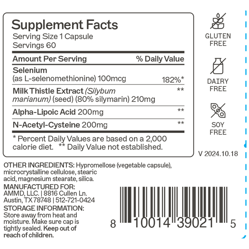 Features milk thistle extract standardized for silymarin and alpha lipoic acid for antioxidant support*