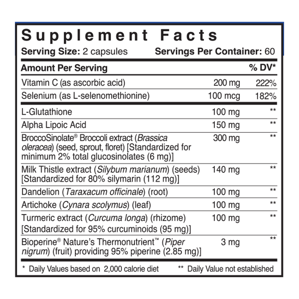 Studies of plant phytochemicals and their potential beneficial effects on liver and digestive tract functionality has shown artichoke, dandelion, and particularly turmeric have notable antioxidant activity. The combined actions of curcumin and silymarin include enhancing phase 2 detoxification enzymes, supporting glutathione synthesis and promoting gastric, colon and liver cell functions. LiverCare includes Bioperine®, a patented extract derived from the common black pepper fruit that contains the alkaloid piperine. Black pepper has been shown to enhance the bioavailability and promote absorption of curcumin both in pre-clinical studies and in studies on human volunteers.