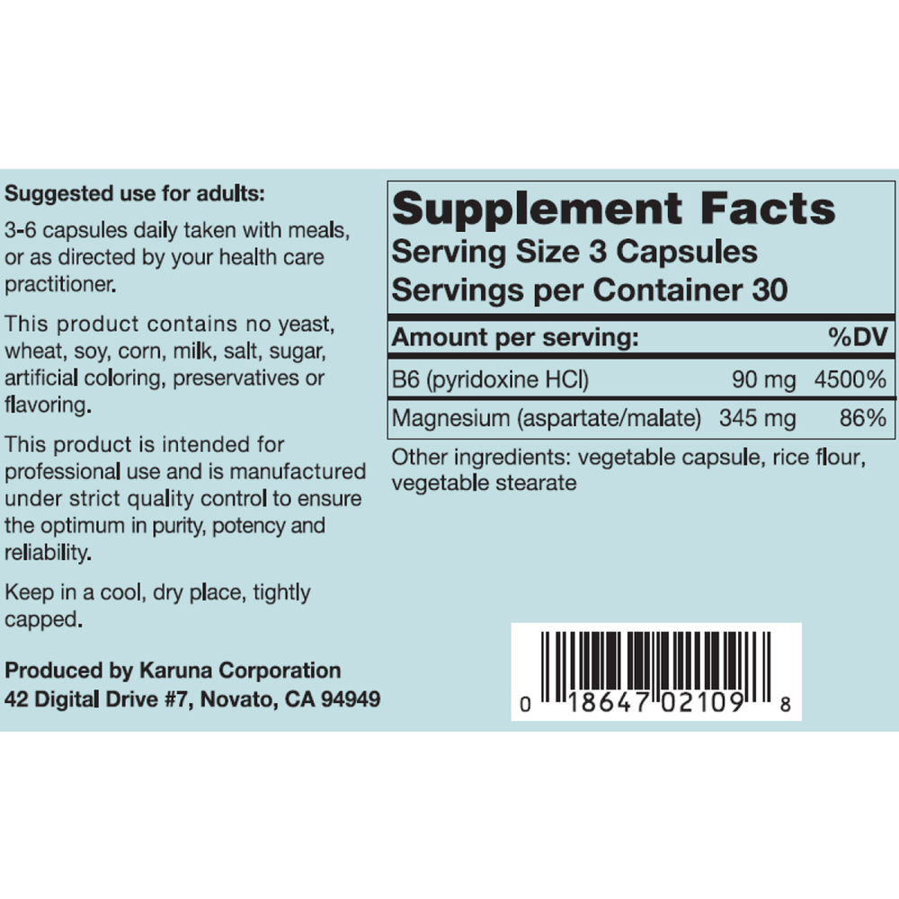 Mag Aspartate offers magnesium fully reacted with aspartic acid to create a true mineral salt in an excipient-free formula free of common food and chemical antigens and allergens. Vitamin B6 is included for its interactions with magnesium. Low magnesium intake is common among women, the elderly, and other patient populations. Clinical trials have found both magnesium and vitamin B6 supplements helpful for diverse concerns, such as helping reduce calcium oxalate formation in the urine, stabilizing premenstrual physiology, and supporting healthy respiratory function.*
