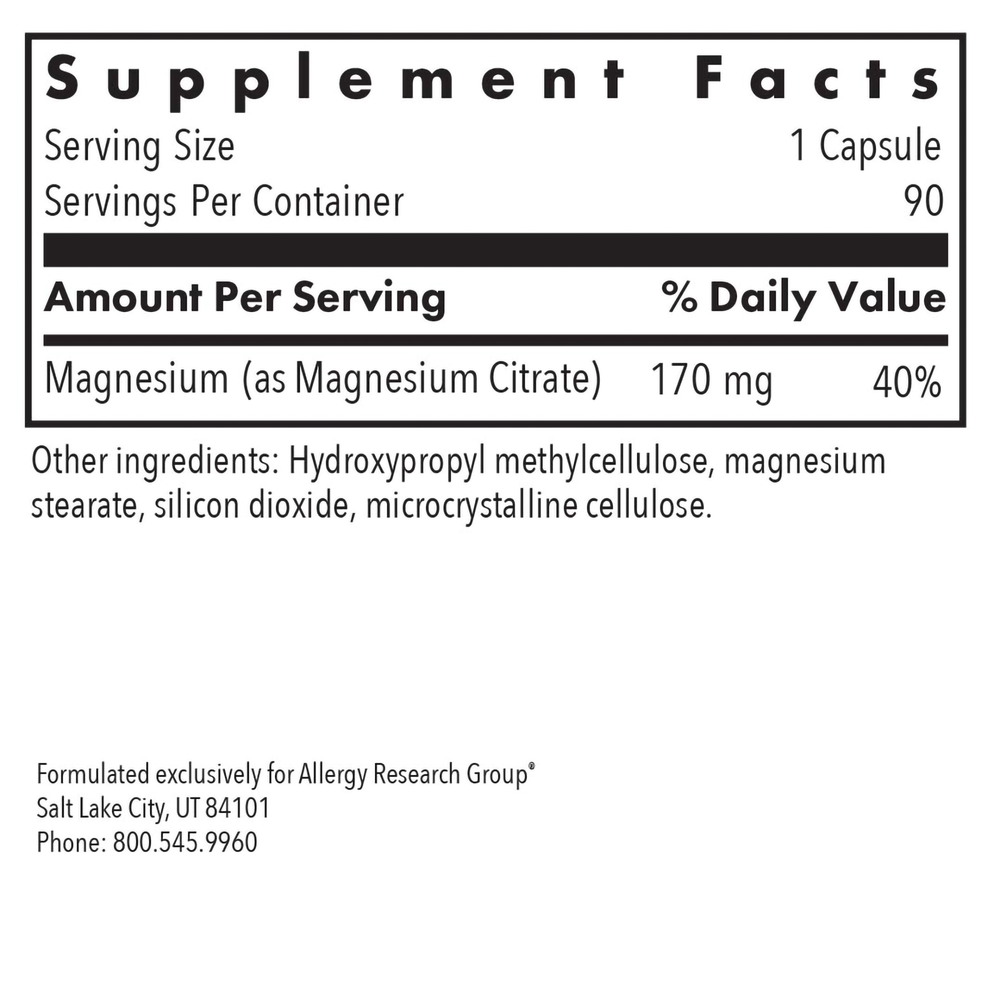 Magnesium in the citrate form. Magnesium is a cofactor for some 300 enzymes in the body, and acts in concert with calcium.*