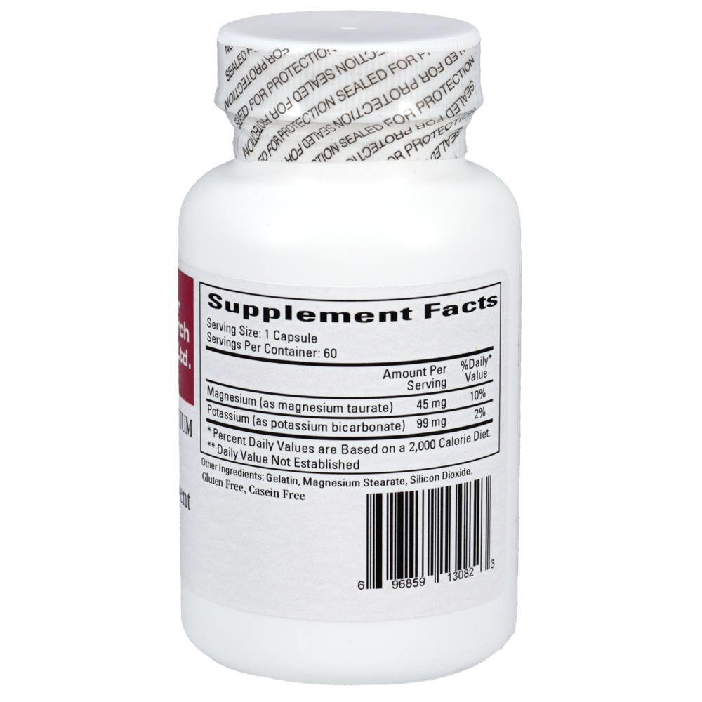 Magnesium-Potassium Taurate by Ecological Formulas is a dietary supplement designed to support healthy cardiovascular function.* There are two key minerals contained in Magnesium-Potassium Taurate by Ecological Formulas that promote the ongoing good health of the cardiovascular system.* These are magnesium, responsible for supporting the nervous system in addition to promoting the healthy contraction and relaxation of muscles, combined with potassium, vital for helping maintain a healthy balance of fluids in the body in addition to maintaining healthy blood pressure already in the normal range.*